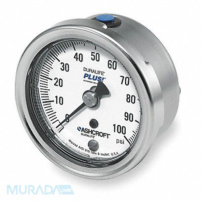 D0994 Pressure Gauge Gauge Type Oxygen Service Cleaned Dial Size (In.) 2-1/2 Range 0 to 100 psi Dial Size (mm) 63 Connection Size 1/4 NPT Connection Location Lower Back Smallest Graduation (PSI) 1 Accuracy (%) +/-1 Case Material Stainless Steel Socket Material 316SS Tube Material 316SS Lens Material Polycarbonate Ring Material Stainless Steel Operating Temp Range (F) -40 Degrees to 150 Degrees Series 1009 Manufacturers Warranty Length 5 Years