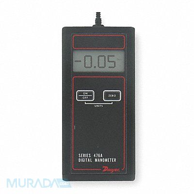 Digital Manometer Maximum Pressure 20 in wc Minimum Pressure -20 in wc Accuracy +/-1.5 Percent of Full Scale Process Connection Size 3/16 in 1/4 in Process Connection Type Hose Barb Batteries Included Yes Digital Display Features 4 Digit LCD NIST Traceable Certificate No Series 476A Application Air Compatible Gases Auto Power Off Yes Batteries Required Yes Battery Type 9V Calibration Certificate Included No Display Units bar in Hg in wc. kPa mbar mm Hg mm wc psi