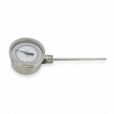 Side-Reading Dial Thermometer Temperature Range 0 Degrees to 200 Degrees F Stem Length 4 in Dial Diameter 3 in 1/2 in NPT Right-Side Includes NIST-Traceable Certificate No Housing Material Stainless Steel Lens Material Glass