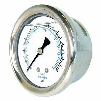 Industrial Pressure Gauge Nominal Dial Size 4 in Accuracy +/-1.0 Percent Gauge Case Material Stainless Steel Process Connection Type NPT Process Connection Gender Male Lens Material Polycarbonate Process Connection Size 1/4 in Field Fillable No Process Connection Location Center Back Case Color Metallic IP/NEMA Rating Not Rated Primary Pressure Range 0 to 300 Dry Dampening Feature None Vibration Resistance Liquid-Filled Dial Color White