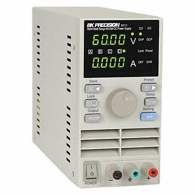DC Power Supply Output Volts (DC) 0 to 60V Output Current (Amps) 0 To 8 A Current Limits 0 Percent to 100 Percent Ripple Volts Regulation Less Than or Equal To 5 mVrms Line Volts Regulation Less Than or Equal 0.01 Percent + 5mV Load Regulation Less Than or Equal To 0.01 Percent + 5mV Meter Type Digital 99-121V AC Input Voltage Input Frequency (Hz) 47 to 63 Hz OCP OVP and OTP Protection Display LED Includes Power Cord User Manual Manufacturers Warranty Length 1 yr Height 7 in