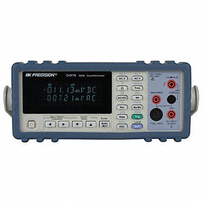 Bench Multimeter Voltage (AC) 500mV to 750V Voltage (DC) 500mV to 1000V 5 mA to 20 A Amps AC 5 mA to 20 A Amps DC Resistance (Ohms) 500 ohm to 50 megaohm Basic DC Accuracy +/-0.02 Percent 50 000 Counts True RMS Yes USB RS232 Interface Special Features Free Application Software via B K Precision website PC Connectivity SCPI Compatible Dual Vacuum Fluorescent Display Auto Ranging Yes NIST Calibration Certificate Safety Rating CAT I 1000V CAT II 300V Resolution 4 3/4 Digits
