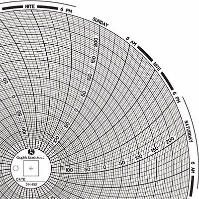 Circular Paper Chart Chart Size (In.) 8.188 Range -150 to 250 -0.15 to 0.25 Recording Time (Day) 7 For Use With Dickson Recorders Package Quantity 60