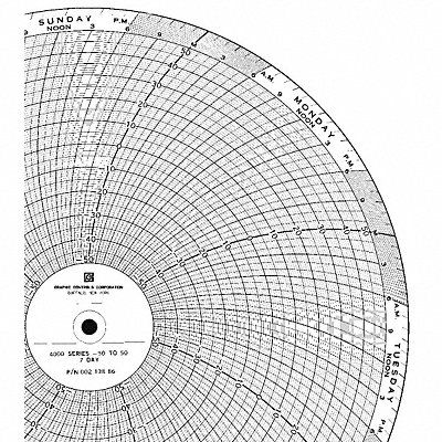 Circular Paper Chart Chart Size 9.938 In Range -50 to 50 Recording Time 7 Day For Use With Partlow Recorders Package Quantity 100