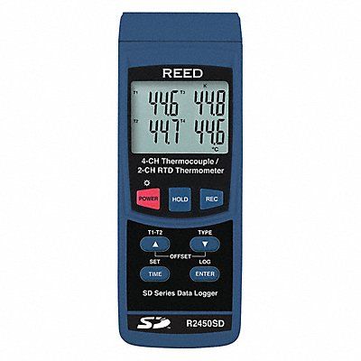 Thermocouple Thermometer RTD Thermocouple Number of Channels 2 4 Includes NIST-Traceable Certificate No Accuracy +/-0.4 Percent +1.8 Degrees F/1 Degrees C -148 Degrees to 3 092 Degrees F/-100 Degrees to 1 700 Degrees C (Thermocouple) -327.9 Degrees to 1 562 Degrees F/-199.99 Degrees to 850 Degrees C (RTD) (6) AA 38 mm H x 53 mm W Display with 3.5-Digit Backlit LCD - 20 mm Digit Height