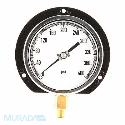 K4532 Panel-Mount Pressure Gauge Gauge Connection Location Bottom Gauge Connection Type MNPT Gauge Connection Size 1/4 in 0 to 400 psi Gauge Accuracy +/-0.50 Percent Basic Gauge Case Material Aluminum Basic Gauge Wetted Parts Brass / Bronze Basic Gauge Lens Material Glass Case Material Cast Aluminum Case Color Black Socket Material Brass Tube Material Bronze Window Glass
