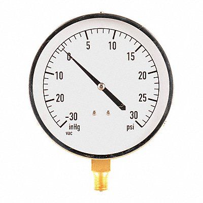 G3995 Industrial Compound Gauge Nominal Dial Size 4 1/2 in Accuracy +/-1.0 Percent Gauge Case Material Stainless Steel Process Connection Type NPT Process Connection Gender Male Lens Material Acrylic Process Connection Size 1/4 in Field Fillable No Process Connection Location Bottom Case Color Silver IP/NEMA Rating Not Rated Primary Pressure Range 30 to 0 to 30 Dry Dampening Feature None Vibration Resistance None Dial Color White Pressure Gauge Type HVAC Dial Pressure Gauge