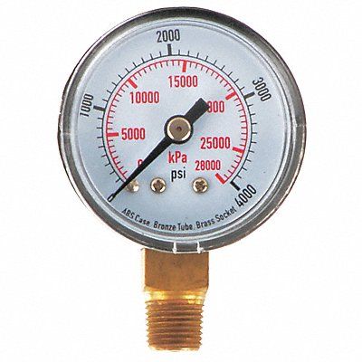 D1334 Commercial Pressure Gauge Nominal Dial Size 1 1/2 in Accuracy +/-3-2-3 Percent Gauge Case Material ABS Plastic Process Connection Type NPT Process Connection Gender Male Lens Material Acrylic Process Connection Size 1/8 in Field Fillable No Process Connection Location Bottom Case Color Black IP/NEMA Rating Not Rated Primary Pressure Range 0 to 4 000 Dry Dampening Feature None Vibration Resistance None Dial Color White Pressure Gauge Type General Purpose Dial Pressure Gauge