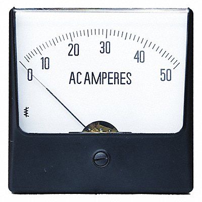 Analog Panel Meter AC Current Range 0 to 50AC A Size (In.) 4.5 Case Style Rish Vista Accuracy +/-1.5 Percent Full Scale Case 10 Percent Glass Filled Polycarbonate Window Polycarbonate Movement Moving Iron Standards UL Includes Mounting Template and Mounting Screws Manufacturers Warranty Length 1 yr