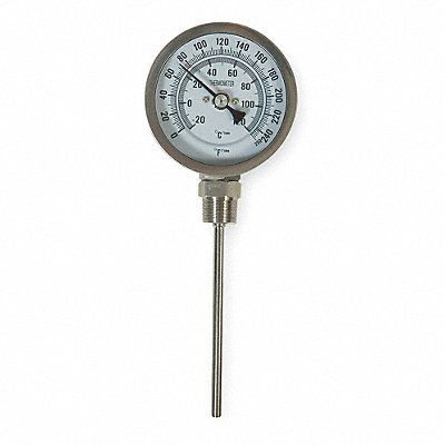 Dial Thermometer Temperature Range 0 Degrees to 250 Degrees F/-20 Degrees to 120 Degrees C Stem Length 6 in Dial Diameter 5 in 1/2 in NPT Bottom Includes NIST-Traceable Certificate No Housing Material 304 Stainless Steel Lens Material Glass