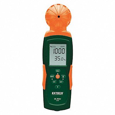 Indoor Air Quality Carbon Dioxide Meter Carbon Dioxide Concentration 0 to 9 999 ppm Temp Range 14 Degrees to 122 Degrees F (-10 Degrees to 50 Degrees C) Relative Humidity Range 10 Percent to 90 Percent Dew Point Range -99.22 Degrees to 118 Degrees F (-72.9 Degrees to 47 Degrees C) Wet Bulb Temperature Range 12.2 Degrees to 118.8 Degrees F (-11 Degrees to 48.2 Degrees C) Humidity Accuracy +/-5 Percent of rdg at 77 Degrees F Resolution 0.1 Degrees Display Dual Backlit LCD