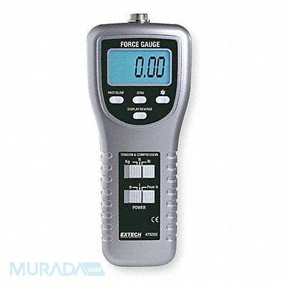 Digital Force Gauge Range 220 lb/100 kg/980 N Resolution 0.1 lb/0.1 kg/0.4 N Accuracy +/-0.5 Percent + 0.1 Lb 0.1 Kg or 0.4 N Measure Tension (Pull) or Compression (Push) on Springs Belts or any Mechanical Mechanism Display 5 Digit Backlit LCD Interface RS-232 Includes 6 AA Batteries Carrying Case Compression and Tension Adapters Instructions
