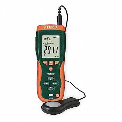 Light Meter Measuring Range 0.01 to 40 000 FC 0.1 to 400 000 Lux Resolution 0.01 FC or 0.1 Lux Accuracy +/-5 Percent Display 4000 Count Backlit LCD Peak Hold Yes Data Hold Yes Min./Max. Memory Yes Data Logging 16 000 readings Interface USB Auto Power Off Yes 9V Battery Type Silicon Photodiode Sensor Cord Length 39 in NIST Certificate included Calibration Certificate Includes Battery Carrying Case USB Interface Cable and Software Instructions Manufacturers Warranty Length 1 yr
