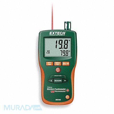 Combination Pin/Pinless Moisture Meter IR Thermometer Moisture Content 0 to 99.9 Relative Temp Range (F) -4 to 140 Display Dual Line LCD Data Hold Yes Infrared Temp Range -58 to 932 F Focus Spot Size and Distance 1 in @ 8 in Emissivity Fixed 0.95 Dew Point Range (F) -22 to 199 For Use With Wood or Building Materials Humidity Range ( Percent RH) 10 to 95 Min/Max. Memory Yes Battery Type 9V Includes Pin Type Moisture Probe Battery and Instructions