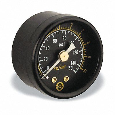Pressure Gauge General Purpose 1-1/2 in 0 to 150 psi Connection Size 1/8 in NPT Connection Location Back Smallest Graduation 1 in Hg to 5 psi Case Material Metal Case Color Black Lens Material Polycarbonate Operating Temp Range 0 Degrees to 150 Degrees F Manufacturers Warranty Length 2 yr.
