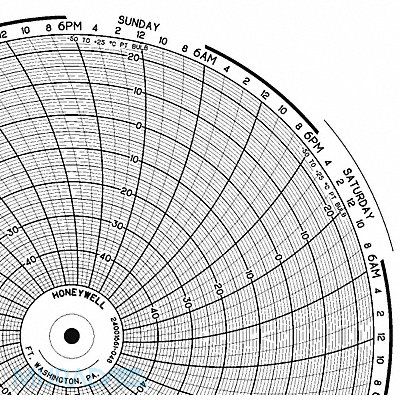 Circular Paper Chart Chart Size 10.313 In Range -50 to +25 Recording Time 7 Day For Use With Honeywell Recorders Package Quantity 100