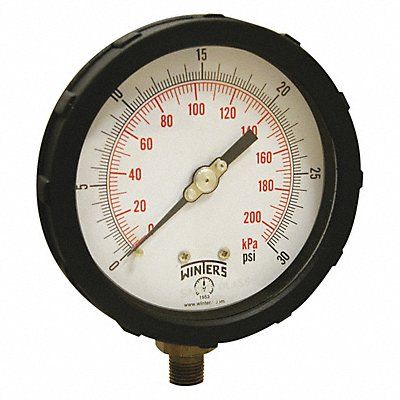 K4215 Industrial Pressure Gauge Nominal Dial Size 4 in Accuracy +/-1.0 Percent Gauge Case Material PBT Process Connection Type NPT Process Connection Gender Male Lens Material Polycarbonate Process Connection Size 1/4 in Field Fillable Yes Process Connection Location Bottom Case Color Red IP/NEMA Rating IP65 Primary Pressure Range 0 to 30 Dry Dampening Feature None Vibration Resistance Field-Fillable Dial Color White Pressure Gauge Type Industrial Pressure Gauge Liquid-Filled Case No
