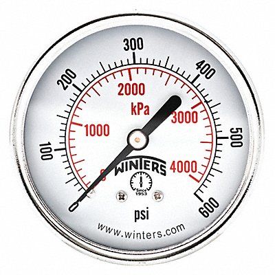 Commercial Pressure Gauge Nominal Dial Size 2 1/2 in Accuracy +/-3-2-3 Percent Gauge Case Material Steel Process Connection Type NPT Process Connection Gender Male Lens Material Acrylic Process Connection Size 1/4 in Field Fillable No Process Connection Location Center Back Case Color Black IP/NEMA Rating IP52 Primary Pressure Range 0 to 600 Dry Dampening Feature None Vibration Resistance None Dial Color White Pressure Gauge Type General Purpose Dial Pressure Gauge