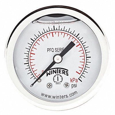 K4539 Panel-Mount Pressure Gauge Nominal Dial Size 2 in Accuracy +/-2.5 Percent Gauge Case Material 304 Stainless Steel Process Connection Type NPT Process Connection Gender Male Lens Material Polycarbonate Process Connection Size 1/8 in Field Fillable Yes Process Connection Location Center Back Case Color Metallic IP/NEMA Rating IP65 Primary Pressure Range 0 to 15 Dry Dampening Feature None Vibration Resistance Field-Fillable Dial Color White