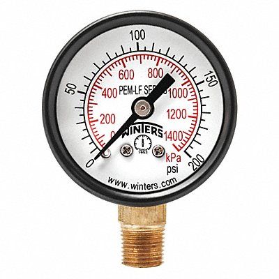 WINTERS J1377 Gauge Pressure 1-1/2in. 0 to 200 psi, 36TV56