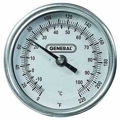 Dial Thermometer Application Agricultural 0 Degrees to 220 Degrees F/-18 Degrees to 104 Degrees C Stem Length 36 in Dial Diameter 3 in 1/2 in NPT Male Stainless Steel Housing and Stem with Glass Lens Back Celsius Fahrenheit