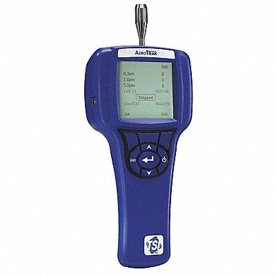Particle Counter Particle Size 0.3 1.0 and 5.0 um Flow Rate 0.1 cfm Relative Humidity Range 20 to 95 Percent Temp Range 41 Degrees to 95 Degrees F Display Backlit Graphical Display Data Storage 1500 Records Number of Channels 3 Count Modes Concentration Counts Interface USB Powered By AC Adapter 110 To 240 V AC 50/60 Hz Or Li-Ion Rechargeable Battery NIST Calibration Certificate