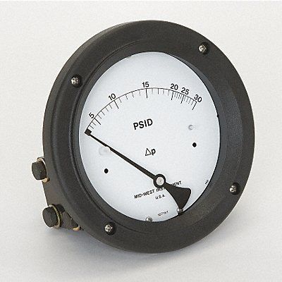 D0752 Differential Pressure Gauge Gauge Nominal Dial Size 4 1/2 in Basic Gauge Case Material Metal Basic Gauge Wetted Parts Buna-N Differential Gauge Connection Type FNPT Differential Gauge Connection Size 1/4 in Gauge Connection Location Back Differential Pressure Range Units psi Differential Pressure Range Value 0 to 30 Gauge Accuracy +/-3-2-3 Percent Body Material Aluminum Gauge Primary Range Smallest Graduation 1 Diaphragm Material Buna-N Seal Material Buna-N