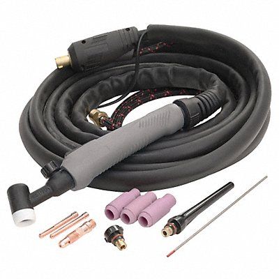 TIG Torch Kit Compatible with Series Fabricator 141i Duty Cycle 20 Percent Maximum Current 140 A Neck Type Rigid TIG Torch Series 17 Welding Processes TIG Welding (GTAW) Application All TIG Welding Process Applications Back Cap Size Designation Long Short Compatible with Brand ESAB Cooling Method Air-Cooled Gas Valve Included Yes Includes Consumables Kit Long Back Cap Short Back Cap Model 17V Number of Pieces 15 Power Cord Length 12 1/2 ft
