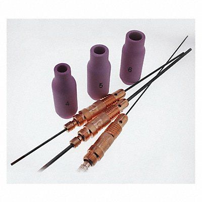 Accessory Kit Includes 1 Short Back Cap (3) Collets .040 1/16 in 3/32 in (3) Collet Bodies .040 1/16 in 3/32 in (3) Alumina Nozzles #4 5 6 (3) 7 in Tungsten .040 1/16 in 3/32 in