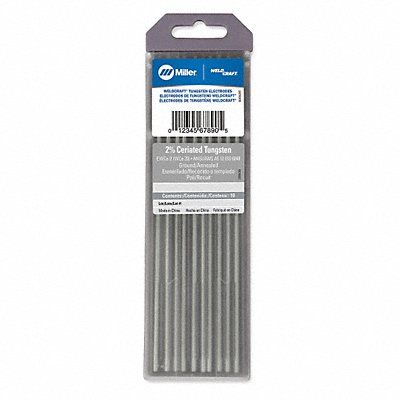 Tungsten Electrode AWS Classification EWCe-2 Chemical Composition Ceriated Color Gray For Material Type Aluminum Carbon Steel Copper Low-Alloy Steel Magnesium Nickel Stainless Steel Titanium Overall Diameter 1/8 in Overall Length 7 in Welding Current Designation AC/DC Welding Processes TIG Welding (GTAW) Electrode Material Tungsten Features Performs Well in DC Welding and Arc Starting At Low-Current Settings Package Quantity 10