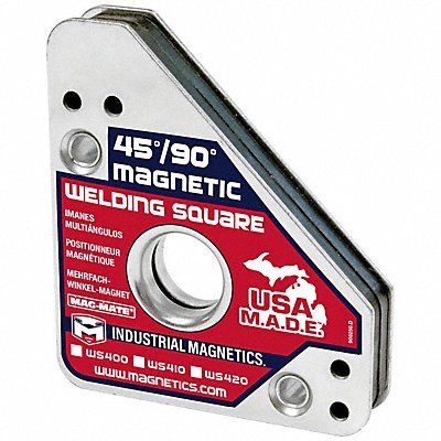 Magnetic Welding Square Maximum Pull 75 lb Overall Height 4.4 in Overall Length 3.8 in Overall Width 3.8 in Positioning Angles 45 Degrees 90 Degrees Switchable On/Off Not Switchable Number of Angles 2 Center Hole Diameter 5/16 in Features Plated Steel Poles Reduce Rust Housing Material Steel Includes Large Finger Hole Magnet Material Ceramic Plate Thickness 0.75 in Positioner Color Silver Positioner Type Magnetic Welding Square Stability Temperature 300 Degrees F