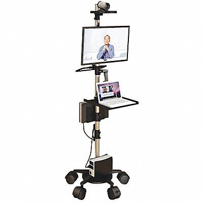 Laptop and Monitor Cart All Purpose Mobile Workstation Material Steel Number of Shelves 1 Color Gray Overall Height (In.) 84 in Overall Width (In.) 31 in Overall Depth (In.) 33 in Shelf Depth (In.) 16 in Keyboard Shelf No Construction Steel Finish Powder Coated Load Capacity (Lb.) 100 lb Adjustable Yes Shelf Width (In.) 16 in Number of Casters 5 Caster Type (2) Locking (3) Swivel Caster Size (In.) 4 in Caster Lock Yes Assembly Not Required Includes Scanner Holder