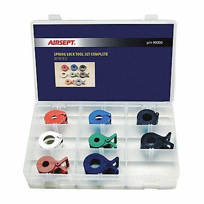 Spring Lock Tool Master Kit Tool Type Spring Lock Tool Kit Application Chrysler LH Series Ford For Use With A/C System Service Material Plastic Outside Diameter 9 in Size 1/2 in 3/4 in 3/8 in 5/8 in Includes (2) Lock Release Tools for Newer GM Models (2) Lock Release Tools for Newer VW Models (4) Lock Release Tools for Most Ford and Chrysler LH series Number of Pieces 8
