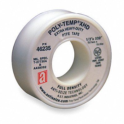 Thread Sealant Tape Specific Sealing Application General Purpose Thread Sealing Series POLY-TEMP(R) XHD Overall Width 1/2 in Overall Length 43 ft Minimum Operating Temperature -400 Degrees F Maximum Operating Temperature 550 Degrees F Maximum Operating Pressure for Liquids 10 000 psi Maximum Operating Pressure for Gases 2 000 psi Maximum Linear Density 1.5 g/cc Minimum Linear Density 1.2 g/cc Color White Tape Type Pipe Thread Sealant Tape For Maximum Thread Diameter 1 1/2 in