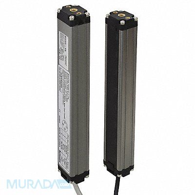 Photoelectric Area Sensor Housing Material Aluminum IP Rating 65 Beam Spacing 20 mm Sensing Range 0.10 to 7.00m Number of Beams 48 Sensing Height 960 mm Circuit Type NPN Open Collector Power Source 12 to 24V DC Cable Connection 4 Pin M12 Cable Length 300 mm Light Source Infrared LED Response Time 12 msec Current Consumption 80 mA Max Load Voltage 30V DC Max Load Current 100 mA Output Mode Light-On Overall Height 980 mm Width 28.6 mm Depth 22.6 mm