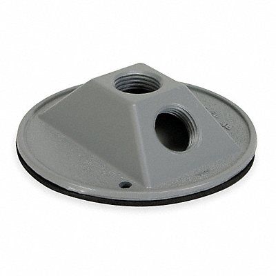 Weatherproof Cover Mounting Box 4 in Round Cluster - Covers For Use With Bell(R) Round Weatherproof Boxes Mounting Orientation Vertical Lid Style No Lid Number of Gangs 1 Gasket Material Neoprene Cover Material Die Cast Aluminum Color Gray Height 4 in Width 4 1/8 in Depth 7/8 in NEMA Rating 3R Standards UL Listed UR - Underwriters Recognized Component CSA C22.2 No 18 Includes (3) 1/2 in Threaded Outlets Installation Hardware Plugs and Gasket Screws