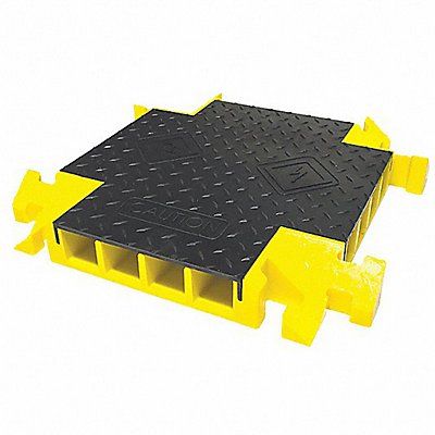 Cable Protector 4-Way Cross Number of Channels 4 Cable Feed Style Lay In Connection Style Dog Bone Channel Height 3 in Channel Width 3 in Load Capacity 12 000 lb/Axle Material Polyurethane Style Drop Over Color Black/Yellow For Use With Bumble Bee General Manufacturing Cable Protector Max Cable Dia 3 in Height 4 in Length 24 in Width 24 in ADA Compliant No Texture Serrated