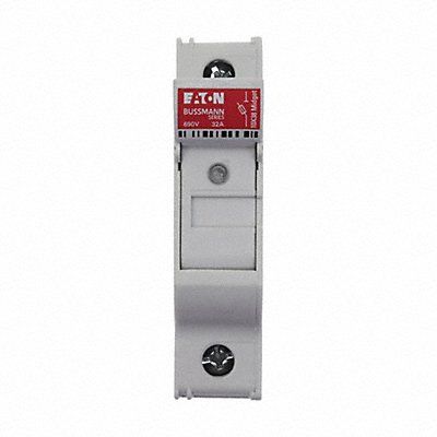 Finger-Safe Fuse Block Body Material Thermoplastic Compatible Fuse Series A60Q AGU ATM ATQ BAF BLF BLN FLM FLQ FNM FNQ FWC GGU HC10S KLK KLKD KLM KTK OTM TRM Clamp/Spade Lug Amp Range 0 to 30 A Fits Fuse Type Midget For Fuse Size 1-1/2 in L x 13/32 in dia Fuse Block Design Finger-Safe Nonrejection Height 2.91 in Length 2.44 in Mounting Style DIN Rail Number of Poles 1 Standards UL Listed Visual Indication Indicating Voltage Rating 600V AC/DC Width 0.69 in
