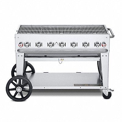 Gas Grill Heat Source Natural Gas Overall Height 36 in Overall Depth 28 in Overall Length 56 in Number of Burners 6 Cooking Surface Depth 21 in Cooking Surface Width 46 in Heating Capacity 99 000 BtuH Tank Capacity 20 lb Tank Material Stainless Steel Caster Diameter 5 in Caster Type (2) Total Lock Casters Includes Regulator Tank Holder Hose Water Pans Weight 177 lb Wheel Size 14 in Wheel Type ABS Plastic