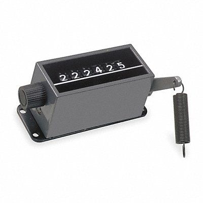 Mechanical Counter Input Type Lever Arm Right Hand Top Coming Number of Digits 6 Mounting Base Max Counts per Second 16 Height 1.81 in Depth 2.15 in Width 5.57 in Display White Digits Black Background Reset Type Manual Color Black