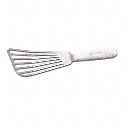 Fish Turner Blade Style Slotted Blade Edge Rounded Blade Length 6 1/2 in Blade Width 3 in Overall Length 11 3/4 in Handle Color White Blade Material Stain Free High Carbon Steel Handle Length 5 1/4 in Handle Material Polypropylene Standards NSF Certified