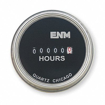 Hour Meter Display Type Electromechanical Time Range 0 to 99999.9 Bezel Face Size 2.33 in dia Bezel Face Shape Round Bezel Face Type Flush Mount Elapsed Time To 99 999.9 Operating Voltage 10 to 80V DC Number of Digits 6 Display Units Hours/Tenths Bezel To Back Length 1.5 in Ambient Temp Range -40 Degrees to 185 Degrees F NEMA Rating 6 6P Material of Construction Lexan Input Type Electrical Reset Type Non Resettable Temp Range -40 Degrees to 185 Degrees F