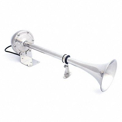High Tone Horn Electric Length (In.) 16 Width (In.) 7-1/2 Height (In.) 4 Dia (In.) 4 Material Stainless Steel Finish Unfinished Universal Mount Mounting Decibels (dB) 115 @ 1 meter 6 Amps Voltage 12 DC For Use With Boat Marine Applications For Use On Fiberglass Metal Plastic Rubber