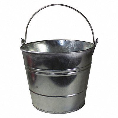 Steel Bucket Pan Type Drain Pan Material Steel Capacity 3 gal Overall Diameter 11 1/2 in Overall Height 10 in Overall Length 12 39/64 in Overall Width 11 27/64 in Color Silver Finish Galvanized