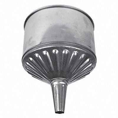 Galvanized Spout Funnel Material Steel Fluid Capacity 256 fl oz Overall Diameter 9 5/8 in Overall Height 11 7/8 in Spout Outside Diameter 1 in Spout Length 4 in Color Silver Spout Yes Cover No Flow Capacity 256 oz Finish Galvanized Includes Removable Filter 50 Grit Mesh Screen Mouth Outside Diameter 9 5/8 in Mouth Shape Round Spout Inside Diameter 1 in