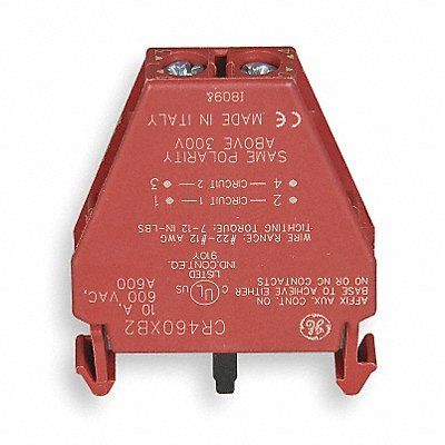 Lighting Contactor Auxiliary Contact Block Amps 10 A For Use With GE Series CR463 Contactors Mounting Front Number of NC Aux. Contacts Position Dependent Number of NO Aux. Contacts Position Dependent Number of Contacts 2 - Code Voltage 600 V AC/250 V DC Max Contact Blocks (No.) See Instructions for Maximum Contacts Starter Size 30A