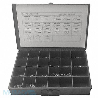 Hex Head Cap Screw Assortment Metal Box Container Material Metal Steel Zinc Plated Flat Washers Included (17) 3/8 in (34) 5/16 in (36) 1/4 in Hex Nuts Included Hex Nuts (36) 1/4 In.-20 (34) 5/16 In.-18 (17) 3/8 In.-16 Lock Washers Included (36) 1/4 in