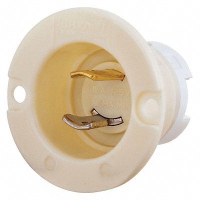 Midget Locking Flanged Inlet Current Rating 15 A Flange Material Nylon Housing Color White NEMA Plug Configuration ML1-15P Number of Blades 2 Number of Poles 2 Voltage Rating 125V AC Wiring Style Standard Flange Type Flanged Grounding Non-Grounded Housing Material Composite Includes Mounting Hardware Yes Maximum Wire Size 12 AWG Midget Locking Yes Minimum Wire Size 18 AWG