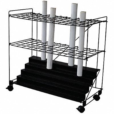 Roll File Mobile Number of Compartments 60 Height 32-3/8 Width 34 Depth 15 Tube Size 2 1/2 sq. in Construction Wire Color Black Finish Powder Coat Caster Type Swivel Number of Casters 4 Caster Dia 2