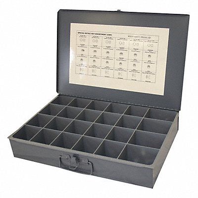 Nut Assortment Includes Washers No Largest Thread Size M12-1.75 Lock Type Nylon Insert Number of Nuts 338 Number of Thread Sizes 24 Number of Washers 0 Nut Finish Zinc Plated Nut Material Steel Nut Type Hex Lock Nut Smallest Thread Size M5-0.80 Standards DIN 1587 DIN 315 DIN 439B DIN 985 System of Measurement Metric Thread Sizes M10-1.50 M12-1.75 M16-2.00 M4-0.70 M5-0.80 M6-1.00 M7-1.00 M8-1.25